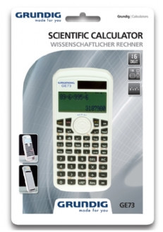 Grundig GE73. Formfaktor: Tasche, Typ: Wissenschaftlicher Taschenrechner, Produktfarbe: Weiß. Textzeilen: 2 Zeilen. Energiequelle: Solar. Breite: 80 mm, Tiefe: 175 mm, Höhe: 24 mm