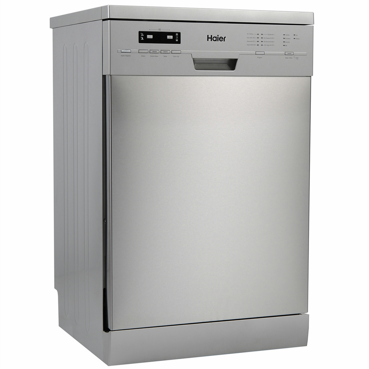 Haier DW15-T2145X. Typ: Freistehend, Türfarbe: Silber, Produktgröße: Full size (60 cm). Anzahl der Gedecke: 15 Stellen, Geräuschpegel: 45 dB, Trocknung Kategorie: A. Energie-Effizienzklasse: A++, Jährlicher Energieverbrauch: 267 kWh, Jährlicher Wasserverbrauch: 2520 l. Breite: 598 mm, Tiefe: 598 mm, Höhe: 850 mm
