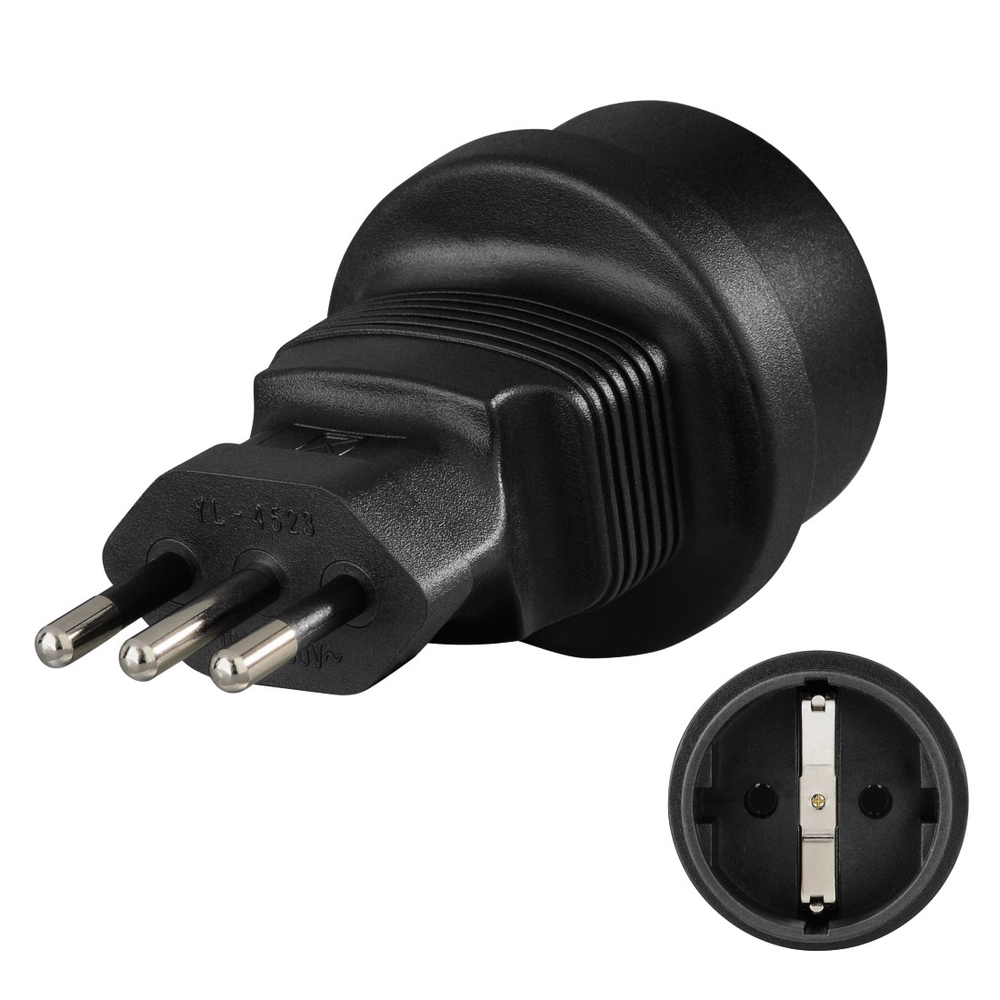 Reisestecker Italien, für Schutzkontakt-, Euro- und Konturenstecker
