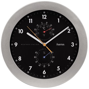 - mit analoger Zeitanzeige, analoger Anzeige von Temperatur (°C/°F) und integriertem Hygrometer
