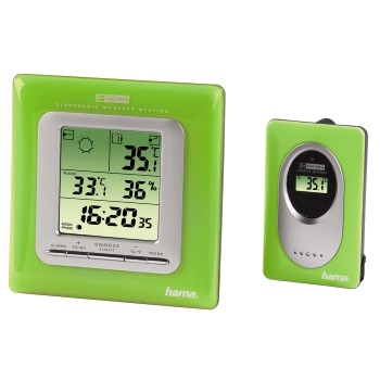 - zweiteiliges Set, bestehend aus Basisstation und Funk-Außensensor (Reichweite: max. 30 m; 433 MHz) für digitale Wetterbeobachtung und zur Anzeige von Uhrzeit, Wochentag und Datum.