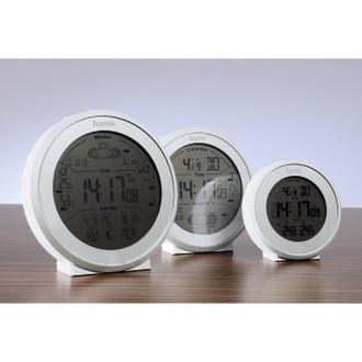 - zweiteiliges Set, bestehend aus Basisstation und Funk-Außensensor, für digitale Wetterbeobachtung und zur Anzeige von Uhrzeit, Wochentag und Datum