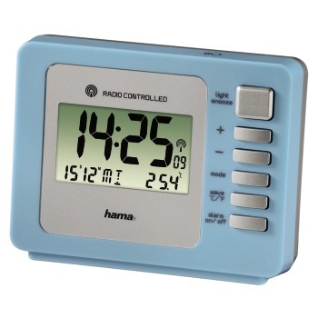 - DCF-Funkuhr mit digitaler Anzeige von Uhrzeit, Weckzeit, Datum und Temperatur