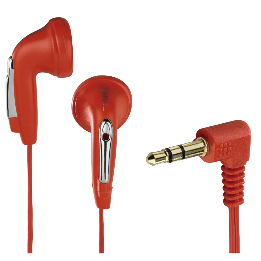 Hama HK1103. Position Kopfhörerlautsprecher: im Ohr, Tragestil: im Ohr, Kopfhörerfrequenz: 20 - 20000 Hz. Übertragungstechnik: Verkabelt, Geräteschnittstelle: 3,5 mm (1/8"), Kabellänge: 1,1 m. Produktfarbe: Rot