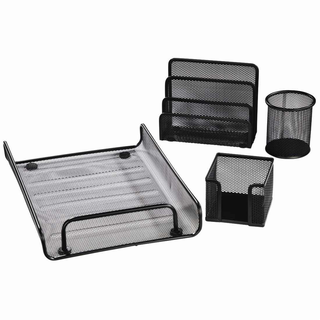 Schreibtisch-Set "Office", 4in1, Drahtmetall, Schwarz