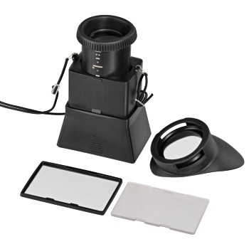 - Lichtschacht mit Displayschutz und Monitorvergrößerung für eine exakte Bildbearbeitung und -kontrolle am Kameramonitor
