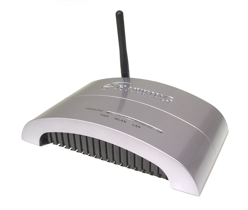 Hawking Technologies Wireless-G Multi-Function AP/Bridge. Model: HWBA54G. Datenübertragungsrate (Maximum): 54 Mbit/s, Frequenzband: 2.412 - 2.462, Anzahl Kanäle: 13 channels. Management-Protokolle: Web-based. Schnittstelle: Ethernet & 802.11b/g. Unterstützte Sicherheitsalgorithmen: 128-bit WEP,WPA. Antennentyp: 2dBi Removable Dipole Antenna (RP-SMA). Upgradeable to Hi-Gain Antennas