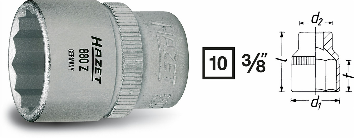 HAZET 880Z-11. Schaftgröße: 76,2 / 8 mm (3 / 8 Zoll), Material: Chrom-Vanadium-Stahl. Länge: 2,6 cm, Gewicht: 23 g