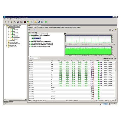 Bei ProCurve Manager Plus 2.1 handelt es sich um ein sicheres, erweitertes Windows-basiertes Netzwerkmanagement-Tool, mit dessen Hilfe Administratoren ProCurve-Geräte zentral über benutzerfreundliche Bildschirmanzeigen konfigurieren, aktualisieren und überwachen sowie ggf. Fehler beheben können. Administratoren können vordefinierte Richtlinien konfigurieren, anhand derer automatische Aktionen in Reaktion auf Netzwerkereignisse von unterschiedlichsten Quellen erfolgen. Die Software kann separat oder als integrierter Bestandteil des HP OpenView Network Node Manager ausgeführt werden. Dies ermöglicht es Administratoren, Netzwerke mit Produkten unterschiedlicher Hersteller zu überwachen und gleichzeitig die ProCurve-spezifischen, flexiblen EDGE-Managementfunktionen zu nutzen. Darüber hinaus lässt sich PCM+ mit Plug-In-Modulen, wie Identity Driven Manager, erweitern, um zusätzliche Mobilitäts-, Sicherheits- und Konvergenzfunktionen bereitzustellen.