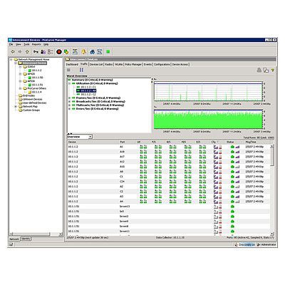 ProCurve Manager Plus 2.3 ist eine sichere, erweiterte Windows-basierte Netzwerkmanagement-Plattform, mit deren Hilfe Administratoren ProCurve Geräte zentral über benutzerfreundliche, informationsreiche Bildschirmanzeigen konfigurieren, aktualisieren und überwachen sowie ggf. Fehler beheben können. Administratoren können vordefinierte Richtlinien konfigurieren, anhand derer automatische Aktionen in Reaktion auf Netzwerkereignisse von unterschiedlichsten Quellen erfolgen. Die Software kann separat oder als integrierter Bestandteil des HP OpenView Network Node Manager ausgeführt werden. Dies ermöglicht es Administratoren, Netzwerke mit Produkten unterschiedlicher Hersteller zu überwachen und gleichzeitig die ProCurve spezifischen, flexiblen EDGE-Managementfunktionen zu nutzen. ProCurve Manager Plus lässt sich mit Plug-in-Modulen wie ProCurve Network Immunity Manager, Identity Driven Manager und Mobility Manager erweitern. ProCurve Manager Plus kann auch das Basismanagement für Geräte anderer Hersteller integrieren.