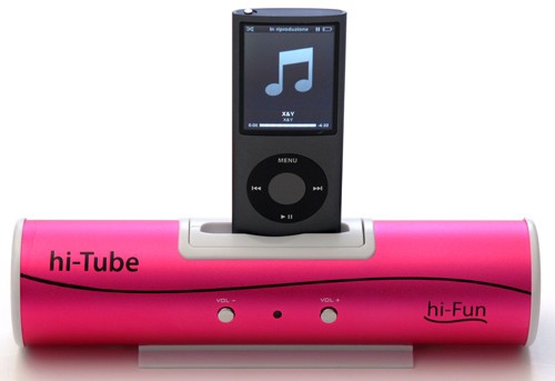 hi-Tube ist ein aus Aluminium gefertigter Stereo-Lautsprecher, der in 6 tollen Farben erhältlich ist. MP3 Player oder Comuter, die Hi-Tube verfügt über einen iPod Dock und einen 3,5mm Klinkenanschluss.