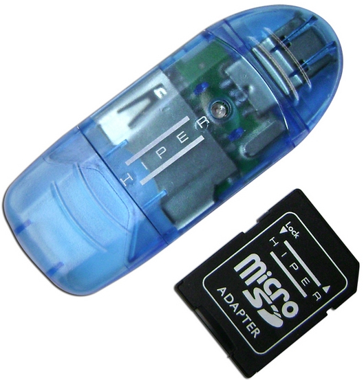 Hiper CR1081. Kompatible Speicherkarten: microSD (TransFlash). Schnittstelle: USB 2.0. Produktfarbe: Blau