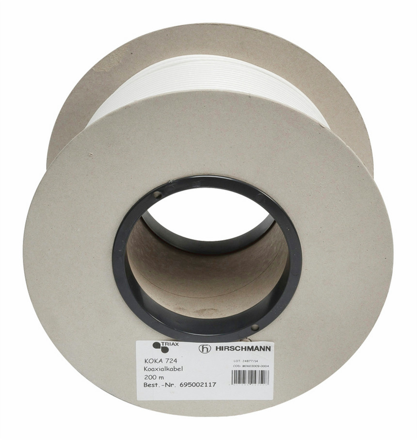 Satellitenkabel für die Verwendung im Innenbereich. 4,1 mm weiß, Ring, 200 m.