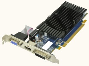 HIS Radeon HD5450. Maximale Auflösung: 2560 x 1600 Pixel, Prozessor-Taktfrequenz: 650 MHz. Grafikkartenspeichertyp: GDDR2, Breite der Speicherschnittstelle: 64 Bit, Speichertaktfrequenz: 800 MHz. Schnittstelle: PCI Express x16. Kühlung: Passiv. Min. benötigter Festplattenplatz: 1024 MB