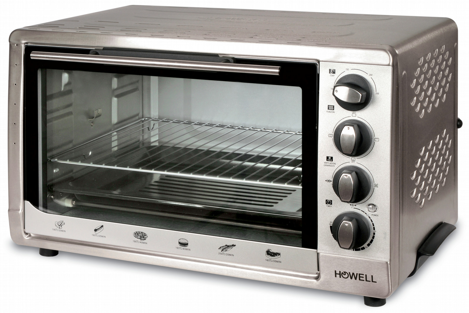 Howell HO.HFAV4532. Ofentyp: Electric oven, Gesamtes Fassungsvermögen Garraum Ofen: 45 l, Insgesamt Backofen Leistung: 2000 W. Produktfarbe: Edelstahl, Kontrolltyp: Rotation, Kontrollposition: Oben rechts. Timer-Typ: Mechanisch. Stromverbrauch (typisch): 2000 W. Breite: 590 mm, Tiefe: 380 mm, Höhe: 360 mm