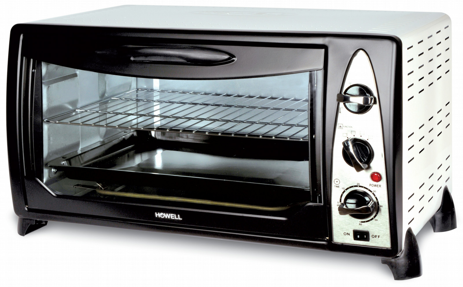 Howell HO.HFLV4592. Ofentyp: Electric oven, Gesamtes Fassungsvermögen Garraum Ofen: 45 l, Insgesamt Backofen Leistung: 2000 W. Produktfarbe: Schwarz, Weiß, Kontrolltyp: Rotation, Kontrollposition: Vorderseite. Timer-Typ: Mechanisch. Breite: 600 mm, Tiefe: 400 mm, Höhe: 350 mm