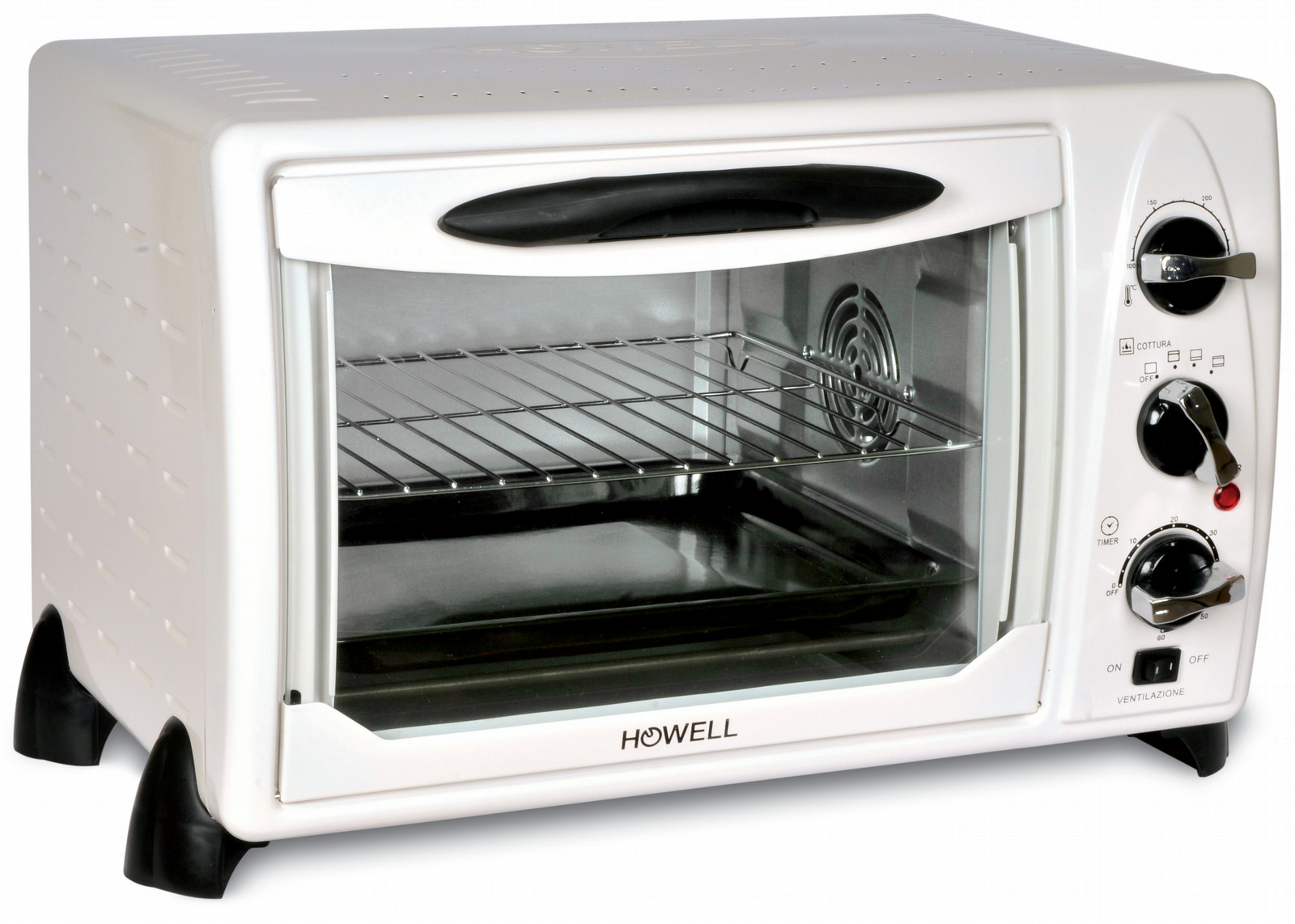 Howell HO.HFV2412BI. Ofentyp: Electric oven, Gesamtes Fassungsvermögen Garraum Ofen: 24 l, Insgesamt Backofen Leistung: 1400 W. Produktfarbe: Weiß, Kontrolltyp: Rotation, Kontrollposition: Vorderseite. Timer-Typ: Mechanisch. Breite: 491 mm, Tiefe: 345 mm, Höhe: 306 mm