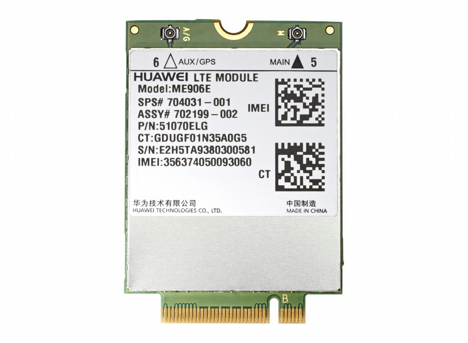 HP lt4112 LTE/HSPA+. Datennetzwerk: 2G, 3G, 4G, EDGE, GPRS, HSPA+, LTE, Unterstützte UMTS-Bandbreiten: 800,850,900,1900,2100 MHz, Unterstützte GSM-Bandbreiten: 850,900,1800,1900 MHz. Konformität mit Industriestandards: M.2, 3042-S3 B. Breite: 42 mm, Tiefe: 30 mm, Höhe: 2,3 mm