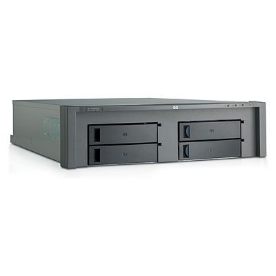 Das HP StorageWorks Tape Array 5300 ist ein 3U-Rack-Gehäuse für zwei Array-Module mit voller Bauhöhe, vier Array-Module mit halber Bauhöhe oder ein Modul mit voller und zwei Module mit halber Bauhöhe. Diese offline Hot-Swap-fähigen Array-Module ermöglichen den Austausch von Laufwerken, ohne den Server herunterzufahren, und das optionale Erweiterungs-Kit sorgt mit einem redundanten Hot-Swap-fähigen Lüfter und Netzteil für noch mehr Verfügbarkeit. Das Tape Array 5300 kann mit vier unabhängigen SCSI-Bussen konfiguriert werden, die an vier unterschiedliche Server angeschlossen sind, oder mehrere Laufwerke können als Daisy-Chain über den gleichen Hostbusadapter verbunden werden. Das Tape Array 5300 unterstützt DAT 24, DAT 40, DAT 72, DLT VS80, DLT 80, Ultrium 215, Ultrium 230 und Ultrium 460 Bandlaufwerke sowie ein DVD-ROM-Laufwerk. Die Vielzahl und Austauschbarkeit der Array-Module macht das Tape Array 5300 zu einer flexiblen Lösung für den Einsatz in Rack-Servern und Hochverfügbarkeitsumgebungen.
