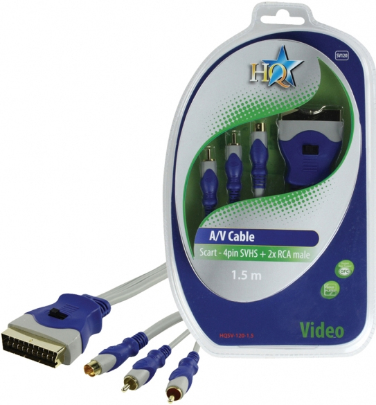 HQ 1.5m SCART M/ S-Video M + 2xRCA M. Anschluss 1: SCART (21-pin), Anschluss 2: 2 x RCA + S-Video, Geschlecht: Männlich/männlich. Material: PVC. Verpackungsart: Sichtverpackung