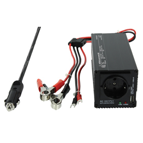 HQ 12/24V-230V 350W. Eingangsspannung: 12-24, Ausgangsleistung: 350 W, Ausgangsspannung: 230 V. Netzteiltyp: Auto, Zweck: Universal, Starkstromtyp: DC-to-AC. Produktfarbe: Schwarz. Breite: 73 mm, Tiefe: 180 mm, Höhe: 73 mm