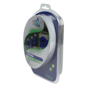 HQ 2.5m SCART M/ S-Video M + 2xRCA M. Anschluss 1: SCART (21-pin), Anschluss 2: 2 x RCA + S-Video, Geschlecht: Männlich/männlich. Material: PVC. Verpackungsart: Sichtverpackung