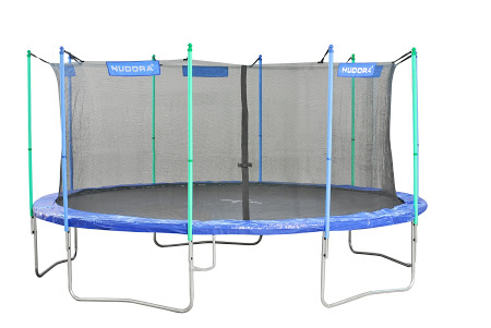 Der Traum vom Springen mit dem Supertrampolin! Das Hüpfvergnügen für den Garten für Groß und Klein! Mit dem Super-Durchmesser von 480 cm lassen sich richtig tolle Luftsprünge ausführen! Die schwarze, unempfindliche Sprungmatte aus hochwertigem Gewebe, fixiert in 100 Spiralfedern, katapultiert jeden in ungeahnte Höhen. Die dick gepolsterte, starke und nylonverstärkte Randabdeckung sorgt für maximale Sicherheit. Die stabilen U-Füsse sorgen für einen allzeit sicheren Stand. Mit Einstiegshilfe am Rahmen. Das Trampolin bietet eine maximale Belastbarkeit von 150 kg. Baumuster-geprüftes Premium-Produkt.