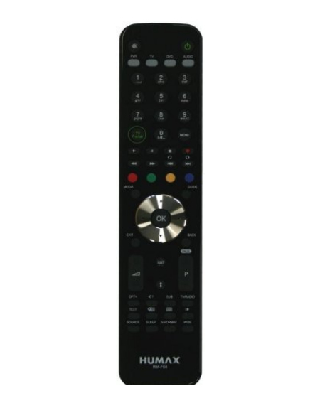 Humax RM-F04. Produktfarbe: Schwarz, Fernbedienung Nutzung: Beistellgerät, Kompatibilität: HD-FOXT2. Eingangssignal: Drucktasten. Akku-/Batterietyp: AAA