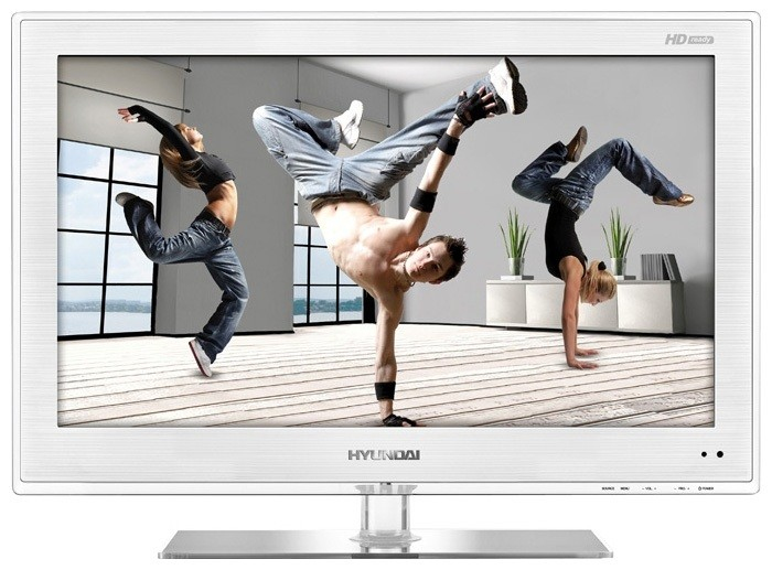 Hyundai H-LED24V8. Bildschirmdiagonale: 59,9 cm (23.6 Zoll), Helligkeit: 300 cd/m², HD-Typ: HD. Tunertyp: Analog, Anzahl Kanäle: 199 Kanäle. RMS-Leistung: 10 W, Audio-System: NICAM. Videotext: 1000 Seiten, Unterstützte Videoformate: AVI,DIVX,MKV,MP4,XVID, Unterstützte Audioformate: MP3,MP4. Produktfarbe: Weiß