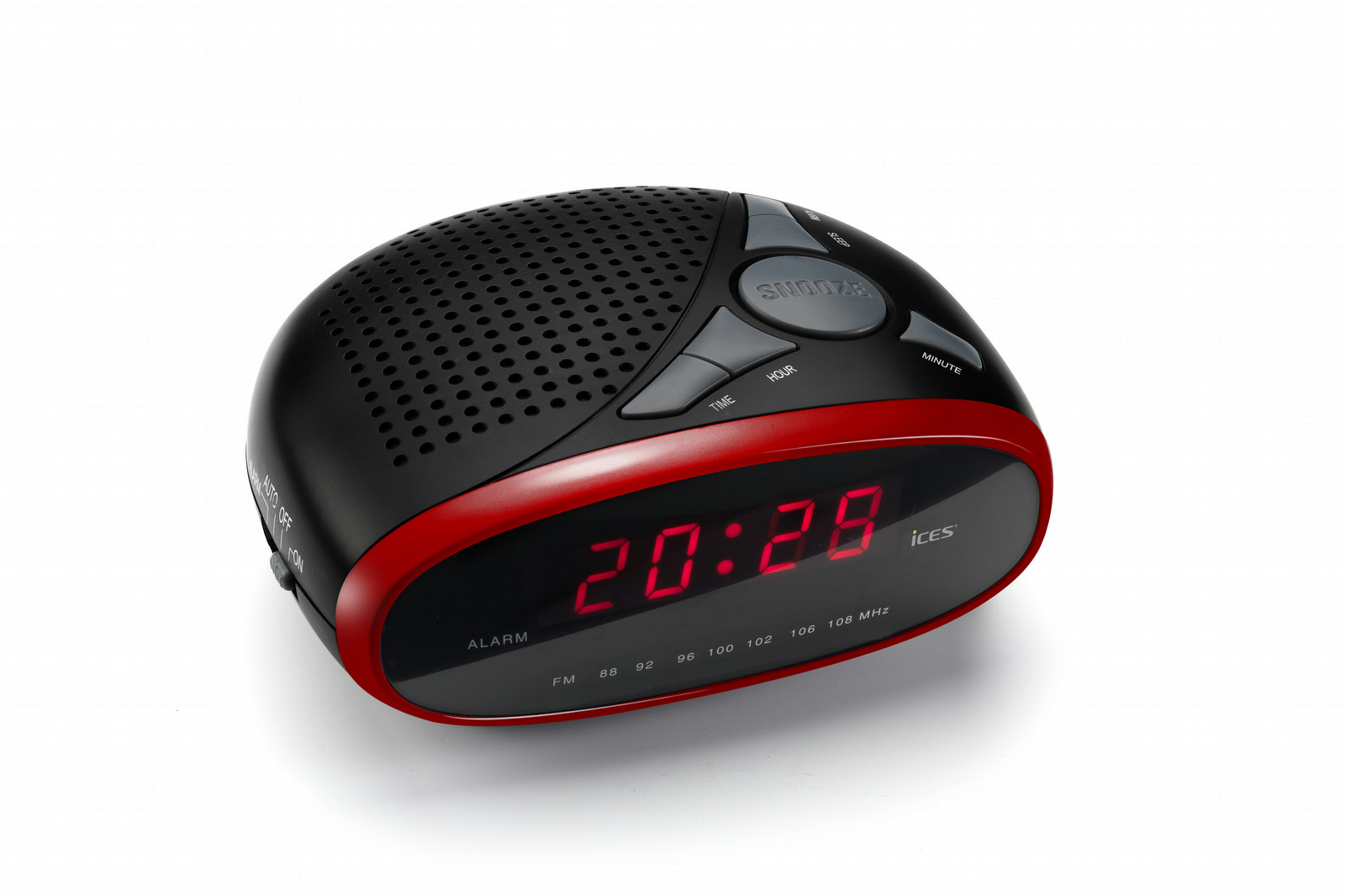 Ices Electronics ICR-200. Radiotyp: Uhr, Tunertyp: Analog. Display-Typ: LED, Bildschirmdiagonale: 1,52 cm (0.6 Zoll). Akku-/Batterietyp: 9V. Stromverbrauch (typisch): 6 W