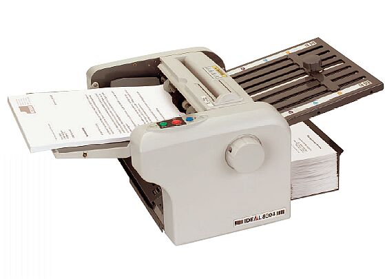 Ideal Folding machine IDEAL 8304. Stromverbrauch (typisch): 70 W. Abmessungen (BxTxH): 820 x 380 x 255 mm, Gewicht: 11,5 kg. Energiebedarf: 220 – 240 V, 50 HZ