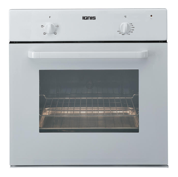 Ignis AKS 133/WH. Ofentyp: Electric oven, Gesamtes Fassungsvermögen Garraum Ofen: 57 l, Innenkapazität des 1. Backofens: 57 l. Produktfarbe: Weiß, Kontrolltyp: Rotation. Energie-Effizienzklasse: A, Stromverbrauch (typisch): 2500 W, AC Eingangsspannung: 230 V. Breite: 595 mm, Tiefe: 564 mm, Höhe: 595 mm