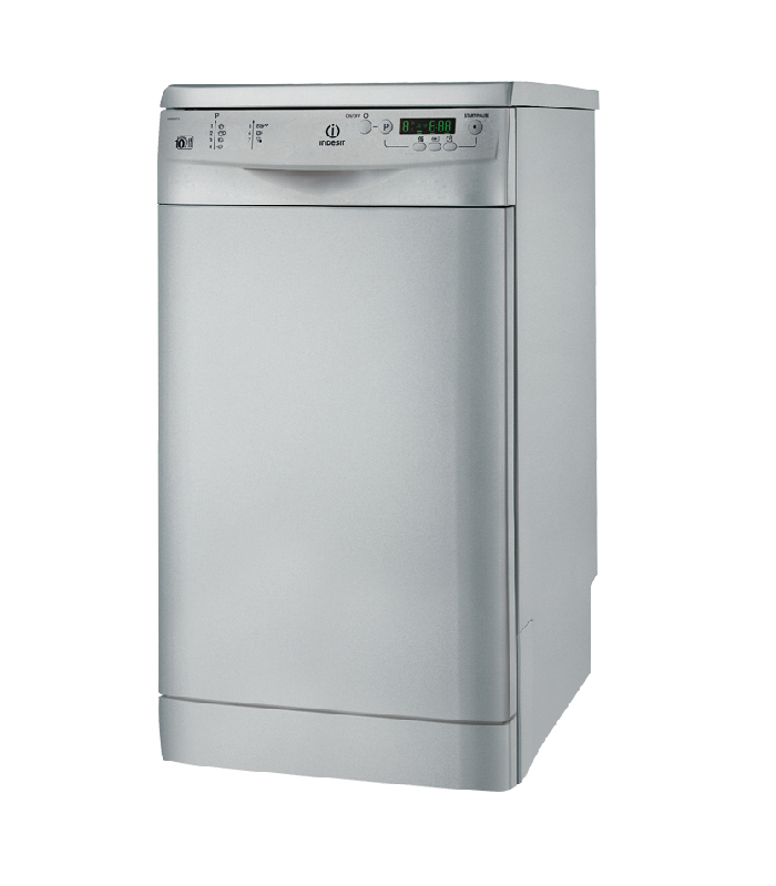 Indesit DSG 573 S. Typ: Freistehend, Türfarbe: Silber. Anzahl der Gedecke: 10 Stellen, Geräuschpegel: 49 dB, Trocknung Kategorie: A. Energie-Effizienzklasse: A, Energieverbrauch pro Zyklus: 1,01 kWh, Wasserverbrauch pro Zyklus: 10 l. Breite: 450 mm, Tiefe: 600 mm, Höhe: 850 mm