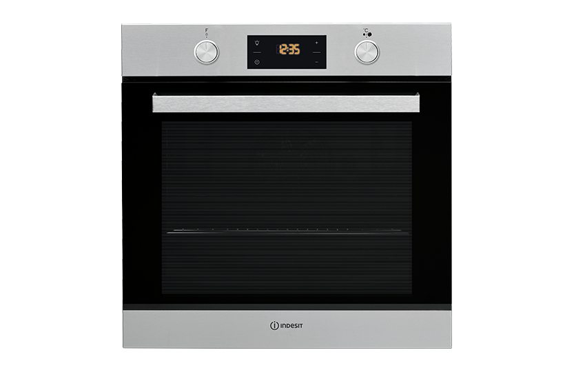 Indesit IFW 6841 JH IX. Ofengröße: Medium, Ofentyp: Electric oven, Gesamtes Fassungsvermögen Garraum Ofen: 71 l. Produktfarbe: Edelstahl, Kontrolltyp: Rotation, Berührung, Kontrollposition: Vorderseite. Energie-Effizienzklasse: A+, Energieverbrauch (konventionell): 0,99 kWh, Energieverbrauch (erzwungene Konvektion): 0,69 kWh. Breite: 595 mm, Tiefe: 551 mm, Höhe: 595 mm