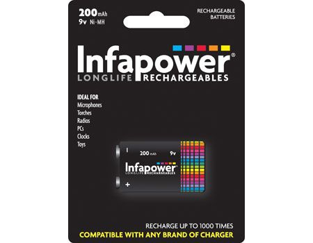 Infapower 9v 200mAh. Batterietechnologie: Nickel Metall-Hydrid, Batteriekapazität: 200 mAh, Zweck: Universal