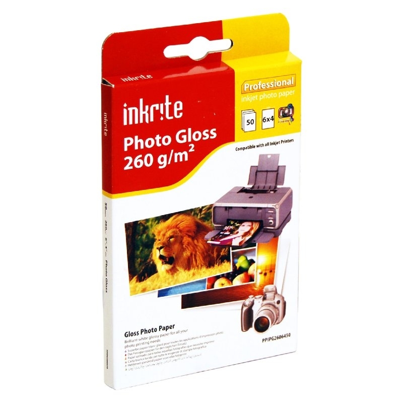 Inkrite Photo Gloss Paper 6x4 260gsm (50 Sheets). Medienanzahl pro Paket: 50 Blätter, Medienabmessungen (Einzelblatt): 6" x 4"