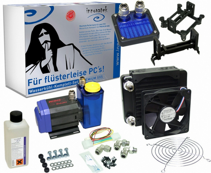 Wenn kalt nicht kalt genug ist - dann benötigen sie das Premium XXS High Performance Set. Ausgerüstet mit dem XX-Flow High End CPU-Kühler und der original innovatek HPPS Plus 12V Pumpe bleiben keine Wünsche offen und kein System zu heiss. Die enorme Kühleistung ist natürlich für alle aktuellen CPU´s mehr als ausreichend. Das Premium XXS Set kann einfach und schnell mit weiteren Wasserkühlern (z.B. für Grafikkarte usw.) erweitert werden.