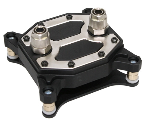 Der innovatek i7 CPU Kühler wurde speziell für den Sockel LGA 1366 entwickelt und ist für diese CPUs und dieses Sockelsystem optimiert worden. Der massive Vollmetallkühler wird per Montagesockel (im Lieferumfang) fest auf dem Mainboard verschraubt. Durch das, basierend auf dem G-Flow, weiterentwickelte Innendesign konnte die Kühlleistung erheblich gesteigert werden und markiert die Spitze aktueller Wasserkühltechnologie. Der massive Kühler wiegt fast 700g und ist etwa 10x10cm gross !!