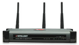 Der INTELLINET NETWORK SOLUTIONS Wireless 802.11n Gigabit Router ist hochmoderne Technik im WLAN-Bereich. Durch die Vorteile der Wireless N (Draft 2.0) Technologie arbeiten WLAN-Netzwerke jetzt mit einer deutlich höheren Übertragungsgeschwindigkeit und -reichweite.