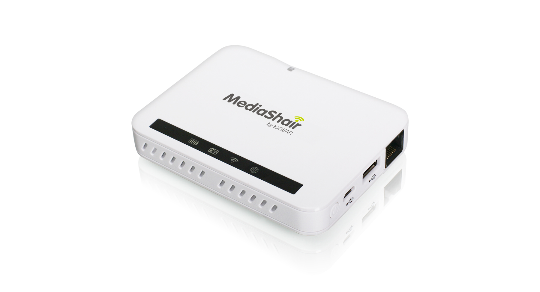 iogear GWFRSDU2. Hostschnittstelle: USB 2.0, Hub-Schnittstellen: RJ-45, USB 2.0, WLAN. Kompatible Speicherkarten: SD. Energiequelle: Batterie/Akku, USB, Ausgangsspannung: 5 V, Ausgangsstrom: 1 A. Produktfarbe: Weiß. Breite: 95 mm, Tiefe: 71 mm, Höhe: 15 mm