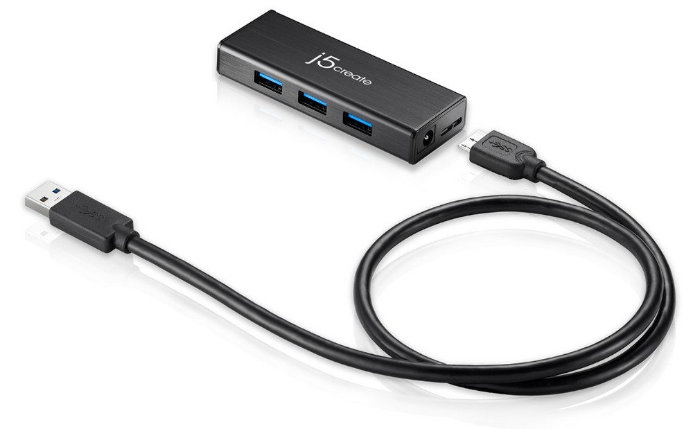 j5 create JUH340. Hub-Schnittstellen: USB 3.0 (3.1 Gen 1) Type-A, Kabellänge: 0,6 m. Datenübertragungsrate: 5000 Mbit/s. Eingangsspannung: 110-240, Eingangsfrequenz: 50/60, Ausgangsspannung: 5 V. Produktfarbe: Schwarz, Material: Aluminium. Unterstützte Windows-Betriebssysteme: Windows 7 Home Premium, Windows 8, Windows 8.1, Windows Vista Home Premium, Windows XP Home, Unterstützt Mac-Betriebssysteme: Mac OS X 10.2 Jaguar, Mac OS X 10.3 Panther, Mac OS X 10.4 Tiger, Mac OS X 10.5 Leopard, Mac OS X 10
