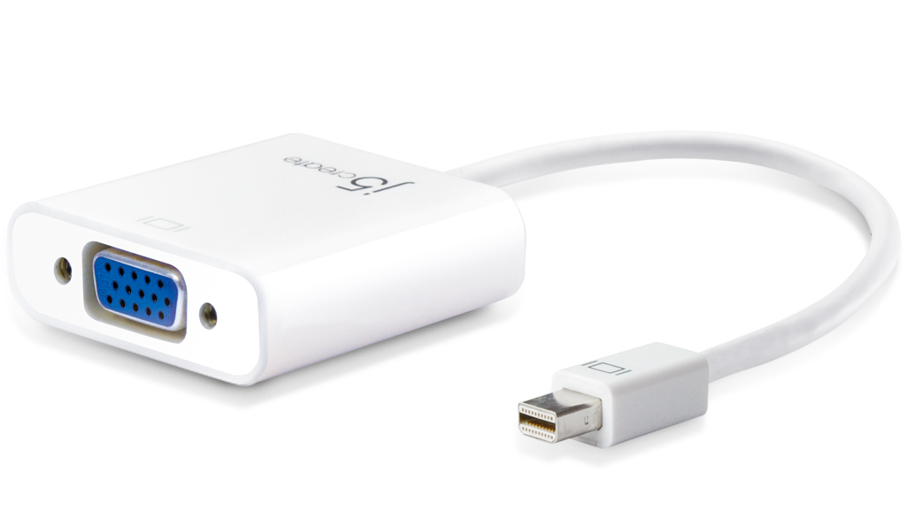 j5 create Mini DisplayPort/VGA Adapter. Anschluss 1: Mini DisplayPort, Anschluss 2: VGA, Geschlecht: Männlich/weiblich. Produktfarbe: Weiß. Breite: 42,9 mm, Tiefe: 14,9 mm, Höhe: 44,9 mm