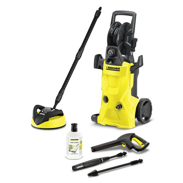Ob kleinere Autos, Gartenzäune oder Fahrräder – der „K4 Premium Home“ ist der praktische Hochdruckreiniger für gelegentliche Einsätze & mittelstarken Schmutz rund ums Haus. Er ist mit einem wassergekühlten Motor versehen und bietet eine Schlauchtrommel für höchsten Anwendungs- und Aufbewahrungskomfort. Außerdem: eine Quick Connect-Pistole, einen 6 m langen Hochdruckschlauch und einen Wasserfilter zum Schutz der Pumpe. Beim Vario Power Strahlrohr lässt sich der Wasserdruck durch Drehen exakt auf die jeweilige Reinigungssituation abstimmen. Der Dreckfräser löst mit seinem rotierenden Punktstrahl auch noch so hartnäckigen Schmutz. Das Home Kit beinhaltet den Flächenreiniger T250 für eine spritzfreie Reinigung ebener Flächen sowie den Stein- und Fassadenreiniger (1l) von Kärcher.