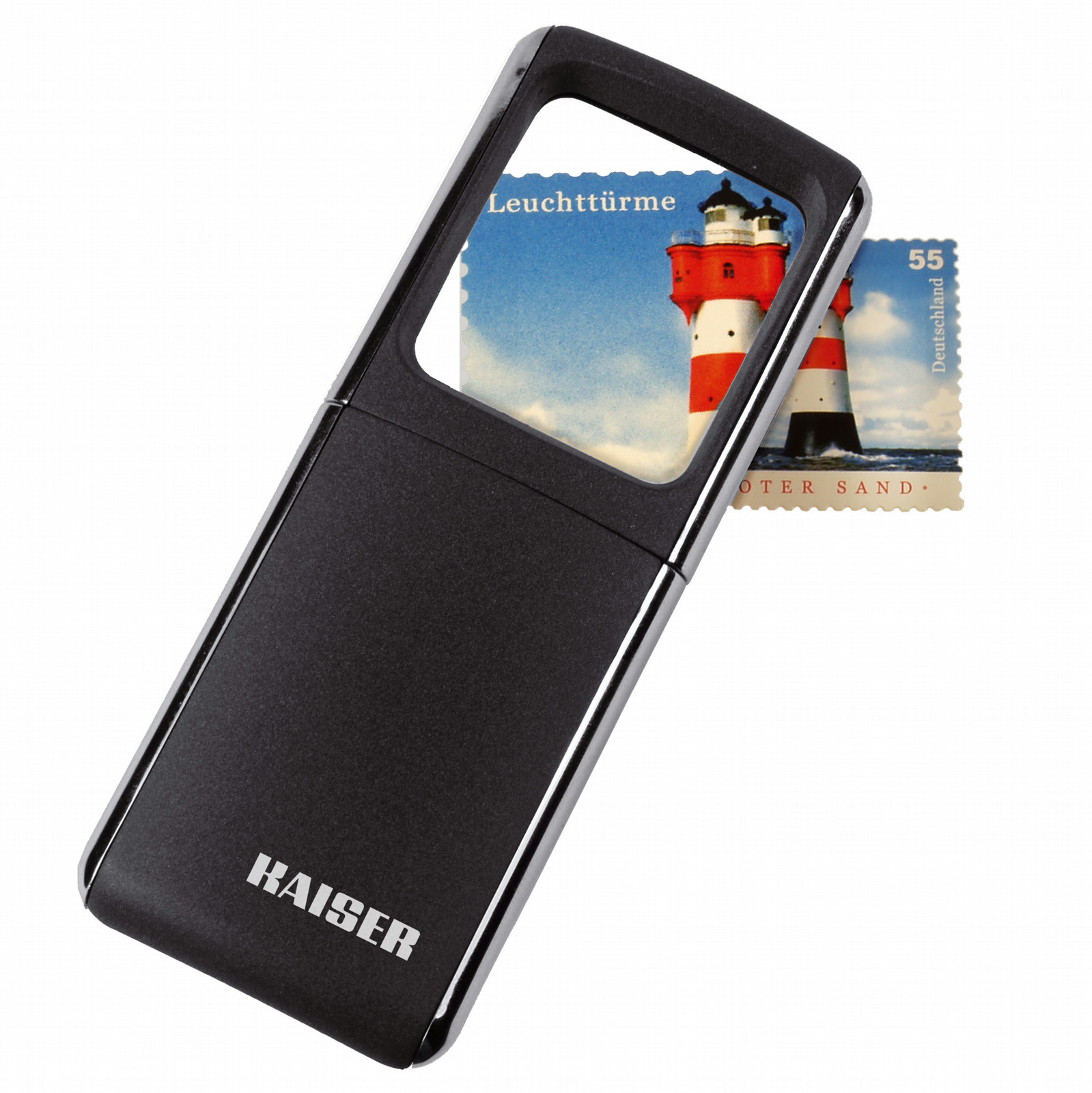Elegante, sehr flache Lupe mit integrierter LED-Beleuchtung. Zum Einschalten der Beleuchtung wird das zweiteilige Gehäuse leicht auseinandergezogen, zum Ausschalten wieder zusammengeschoben. Angenehme, mattgraue Griffflächen. Inkl. Batterien (2 x 3 V, CR1130).