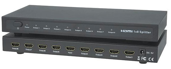 Kanex HD8PSPM. Video Porttyp: HDMI, Stecker: 1x HDMI in, 8x HDMI out. Unterstützte Grafik-Auflösungen: 1920 x 1080 (HD 1080), 1920 x 1200 (WUXGA), Maximale Auflösung: 1920 x 1200 Pixel. Produktfarbe: Schwarz. Abmessungen (BxTxH): 256 x 114 x 29 mm, Gewicht: 740 g. Zertifizierung: FCC, CE, UL