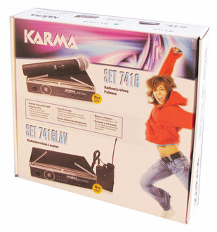 Karma Italiana SET 7416. Übertragungstechnik: Kabellos, Maximaler Betriebsabstand: 50 m. Produktfarbe: Schwarz. Audioausgang: 6,3 mm. Stecker: 6.3mm