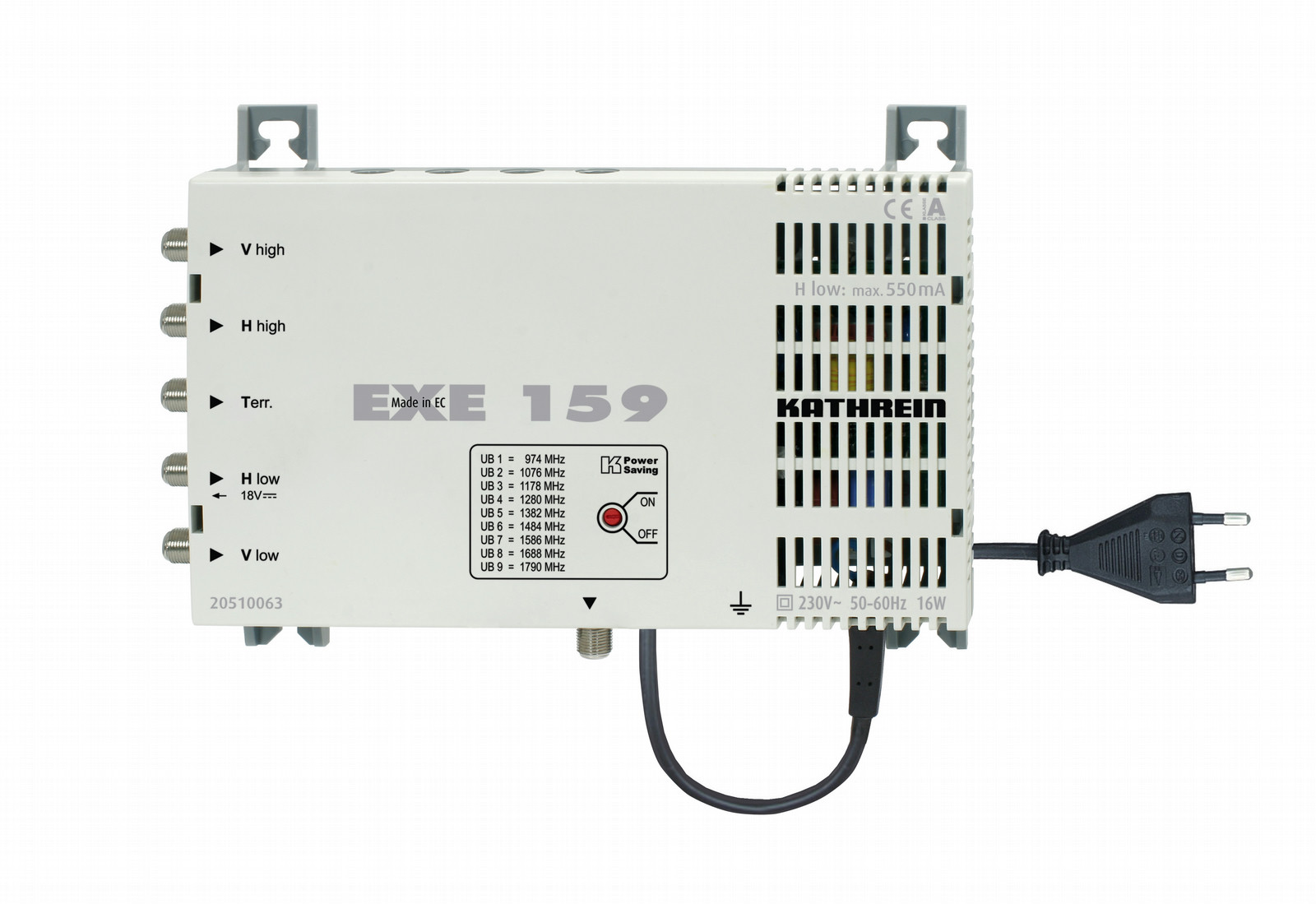 - Niedrige Leistungsaufnahme durch hocheffizientes, kurzschlussfestes Schaltnetzteil gemäß ERP-Richtlinie und Stromsparkonzept (der Einkabel-Multischalter wird mit dem Ausschalten der Receiver abgeschaltet).