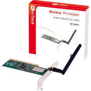 Keyteck NET-54PCI. Übertragungstechnik: Kabellos, Hostschnittstelle: PCI, Schnittstelle: WLAN. Netzstandard: IEEE 802.11g. Produktfarbe: Mehrfarben. Unterstützte Sicherheitsalgorithmen: 128-bit WEP, 64-bit WEP, WPA-PSK, Unterstützte Windows-Betriebssysteme: Windows 2000, Windows 2000 Professional, Windows 98SE, Windows ME, Windows XP Professional. Kompatibilität: PC