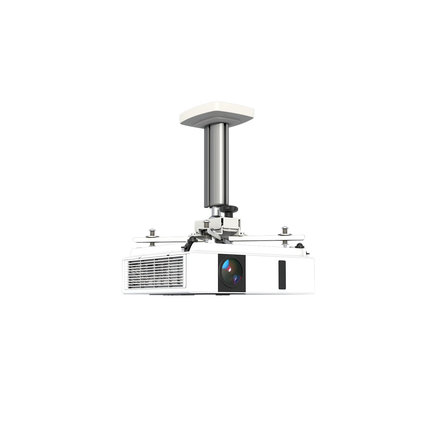 Hochwertige, universelle Deckenhalterung für Projektoren, Farbe RAL 9003 weiß, Deckenabstand 30 cm fix, kann bis auf 10 cm gekürzt werden