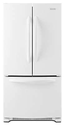 KitchenAid KBFS22EWWH. Bauform: Freistehend, Produktfarbe: Weiß, Design: French door. Gefrierfach - Nettokapazität: 182,6 l, Tiefkühlerposition: Boden. Jährlicher Energieverbrauch: 470 kWh. Breite: 812,8 mm, Tiefe: 863,6 mm, Höhe: 1778 mm
